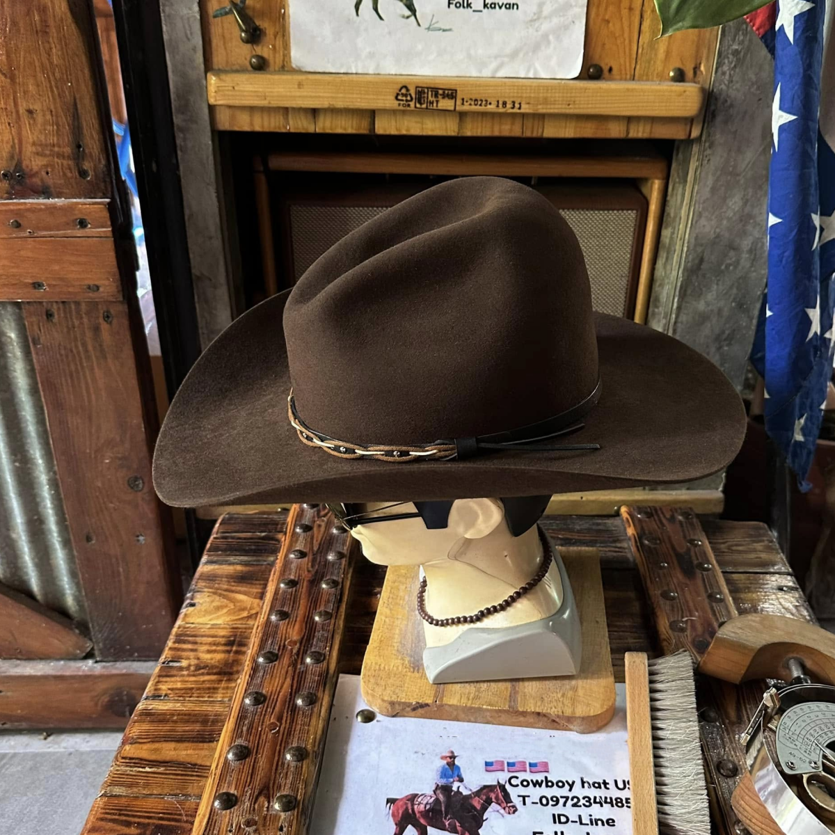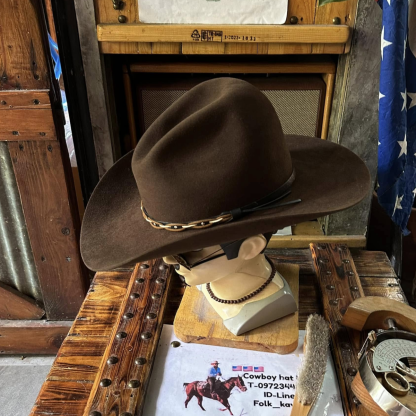 Premium wool felt western cowboy hat, handmade in the USA. Gus style, fine and smooth texture. Beautiful color. Legendary dark brown. Strong shape.